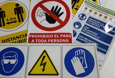 Fabriquem els senyals normalitzats amb, colors, símbols i textos que adverteixen sobre perills, indiquen obligacions, o informen sobre mesures d'emergència.